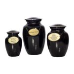Our Black Cast Metal Urns are fashioned from solid metal with a glossy, porcelain-look finish exterior, giving them a solid weight and quality. Each black urn includes a tight screw-top lid to keep its contents safe and sound.